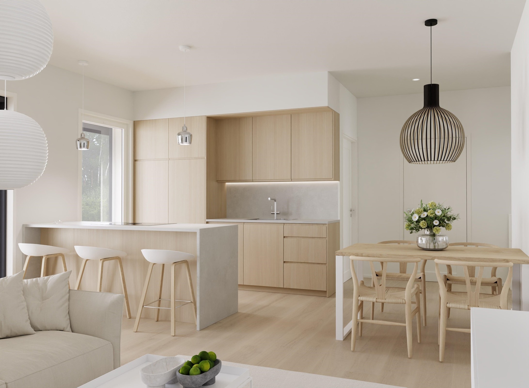 Tämä koti tarjoaa myös upeat ulkoilumahdollisuudet, jotka ovat ulottuvillasi suoraan kotioveltasi. Huoneiston pohjaratkaisu on suunniteltu todella toimivaksi ja kauniissa keittiössä on integroidut kodinkoneet. Huoneiston kruunaa tilava kodinhoitohuone ja erillinen wc. Terassilta löytyy jokaiselle huoneistolle oma varasto.