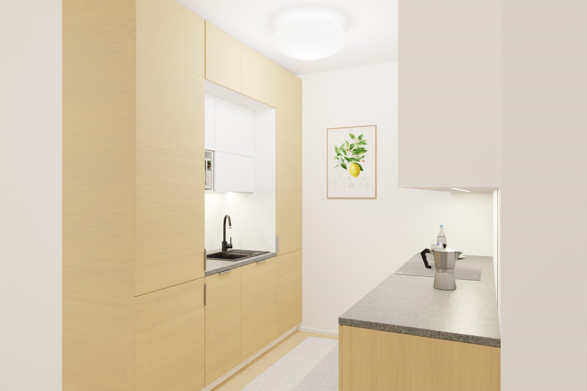 Kaksiot ja kolmiot on suunniteltu tyylikkäiksi ja käytännöllisiksi. Huoneistojen keittiöt varustetaan Topi-Keittiöiden kaapistoilla, lattioihin asennetaan vinyylilankku ja saunat paneloidaan tervalepällä. Säilytystilaa tarjoavat kaapistot, vaatehuone ja huoneistokohtainen ulkovarasto. Takapihan puolella on etelään suuntautuva terassi, jossa on tarjolla aurinkoa aamusta iltaan. Valmiina on myöskin varaus terassin lasitukselle, mikä lisää käyttömahdollisuuksia ympäri vuoden.