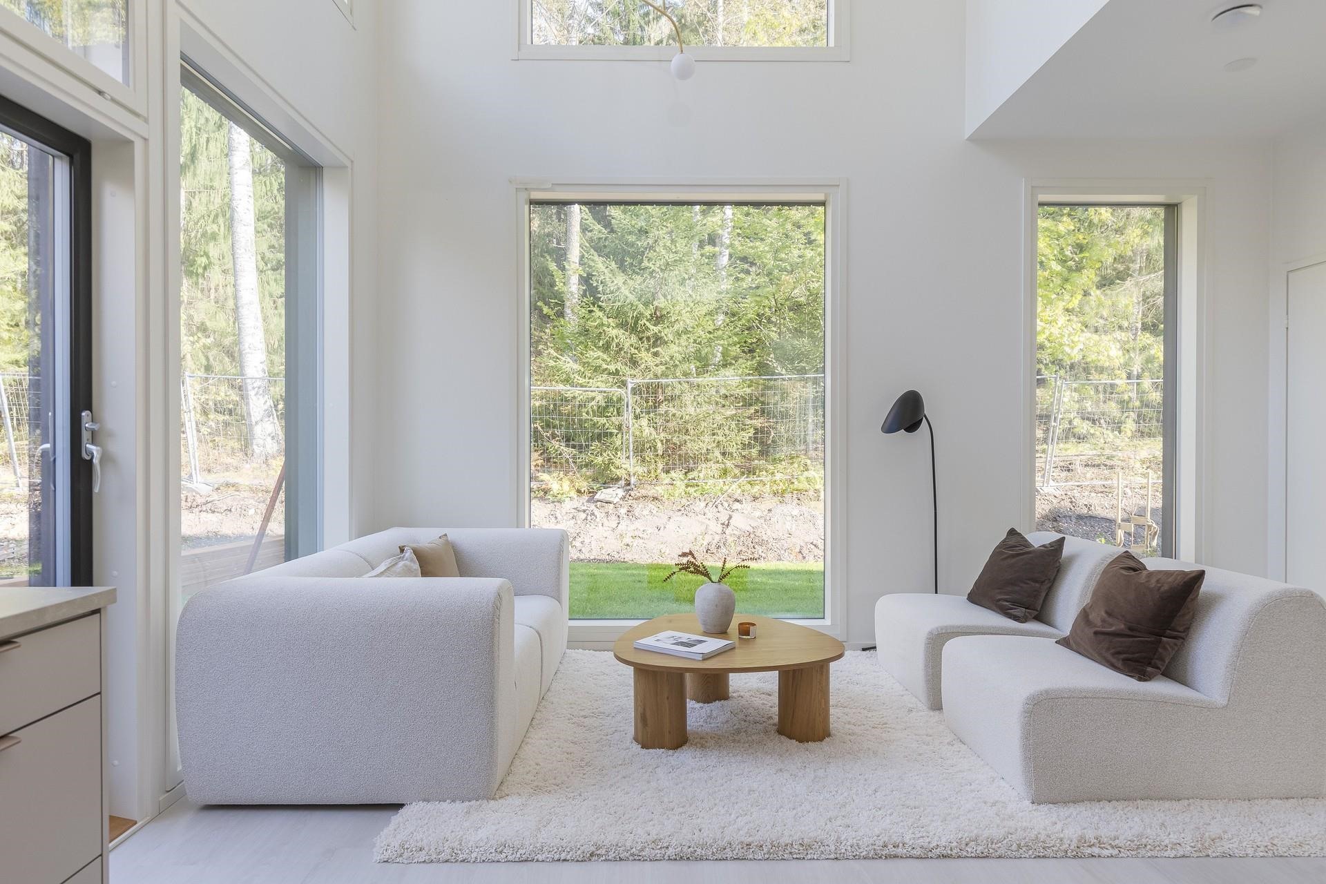 Sisustusvalinnoiltaan kodit on suunniteltu kestämään aikaa ja arkea. Korkea huonekorkeus, suuret ikkunat, hengittävä puurakenne sekä vesikiertoinen lattialämmitys tekevät asumisesta viihtyisää ja kalustamisesta vaivatonta. Näissä kodeissa valo ei ole vain ikkunoista tulevaa - se on tunne, joka täyttää oman mielenmaiseman. Modernit ja laadukkaat materiaalivalinnat viimeistelevät kokonaisuuden.