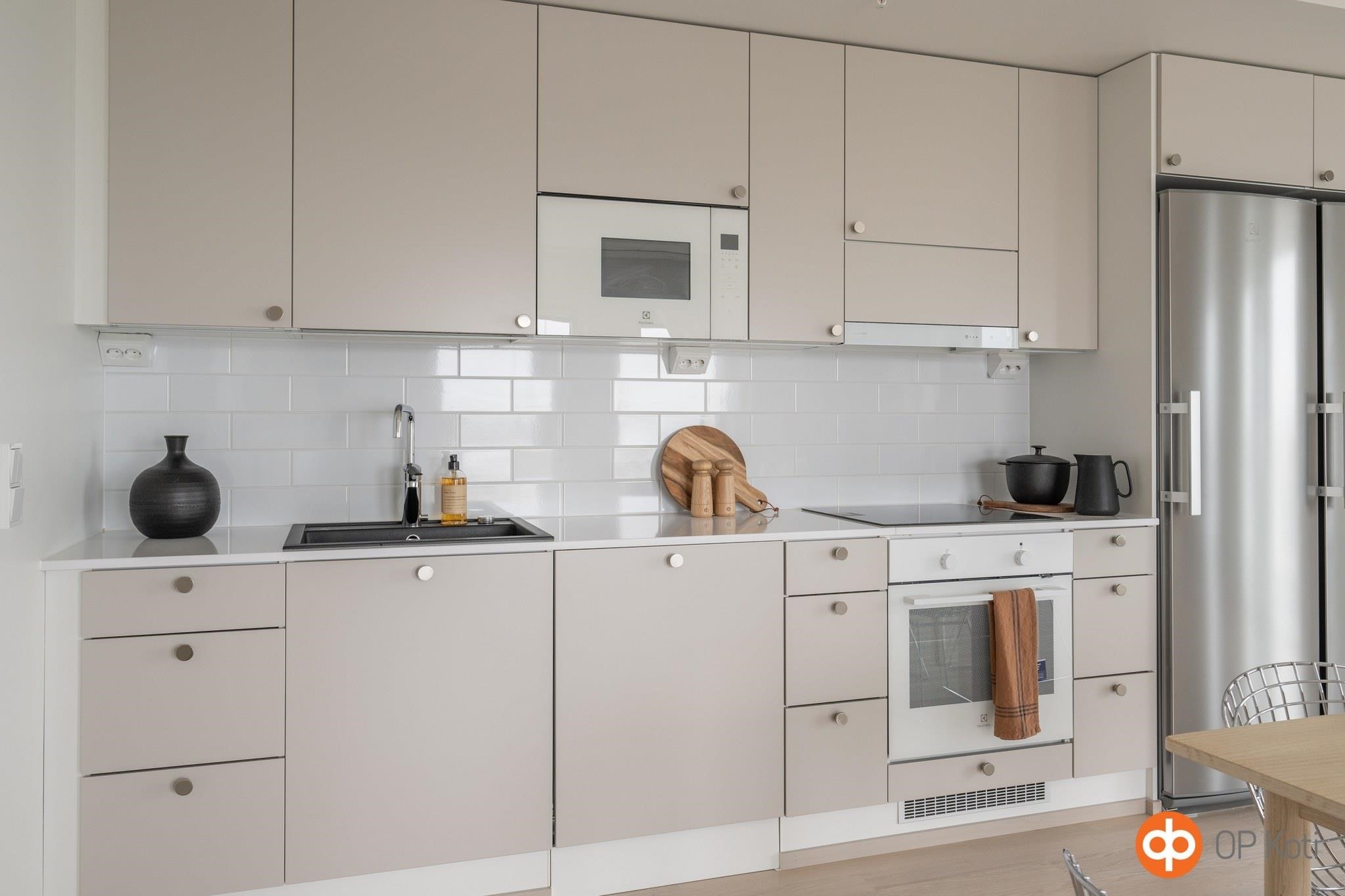 Huoneistokohtaiset materiaalivalinnat voivat poiketa valokuvatun asunnon materiaaleista.