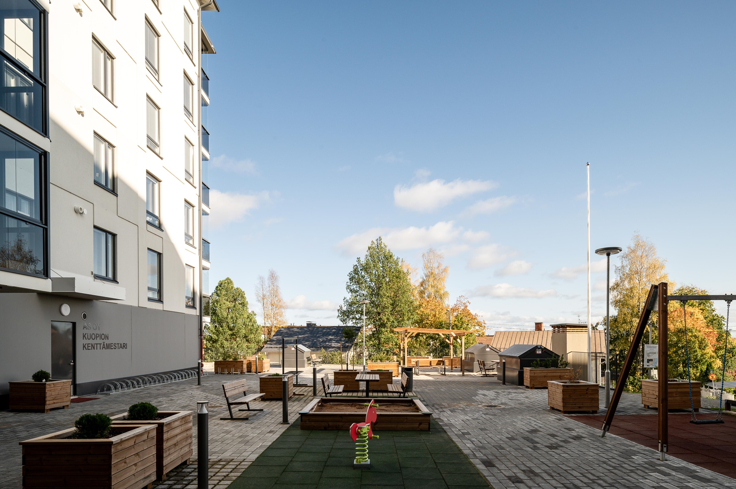 Asunto Oy Kuopion Kenttämestari on Peab Oy:n rakentama viisikerroksinen moderni kerrostalo, joka on juuri valmistunut omalle tontille keskustan välittömään läheisyyteen Mölymäelle! Kenttämestarissa on 28 kaupunkikotia erilaisiin asumistarpeisiin. Kenttämestari tarjoaa tasokasta ja toimivaa arkea. Kodit lämpiävät vesikiertoisella lattialämmityksellä ja ilmanvaihto on huoneistokohtainen. Huoneistojen materiaalit ovat laadukkaat ja tehty kestämään elämää. Taloyhtiön autopaikat sijaitsevat pihakannen alla pysäköintihallissa. Hallikerrokseen pääsee rappukäytävästä hissillä. Hallipaikat myydään omina osakkeina 17 500-20 000 euron hintaan. Mölymäeltä avautuvat upeat näkymät keskustaan ja Kuopionlahdelle. Torille on noin 10 minuutin kävelymatka ja kaikki palvelut siten helposti saavutettavissa.