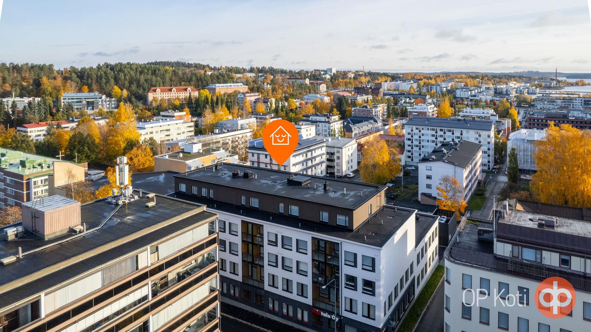 Tämä kaupunkikoti tarjoaa vaivattoman ja huolettoman arjen keskeisellä mutta rauhallisella paikalla kaupungin sydämessä. Kaikki palvelut, kuten tori, satama, museo, musiikkikeskus ja kirjasto, ovat vain kävelymatkan päässä. Linja-auto- ja rautatieasema ovat myös lähellä, mikä tekee matkalle lähtemisestä helppoa ja vaivatonta.