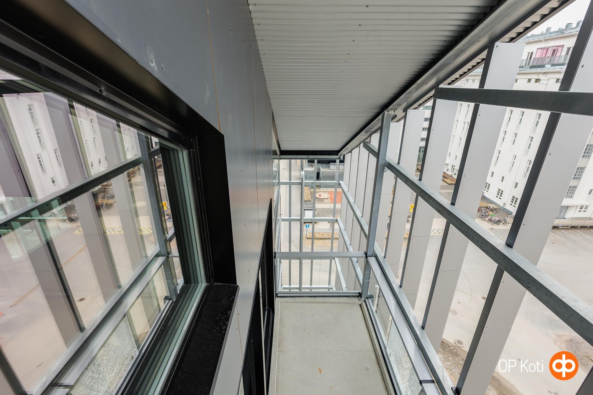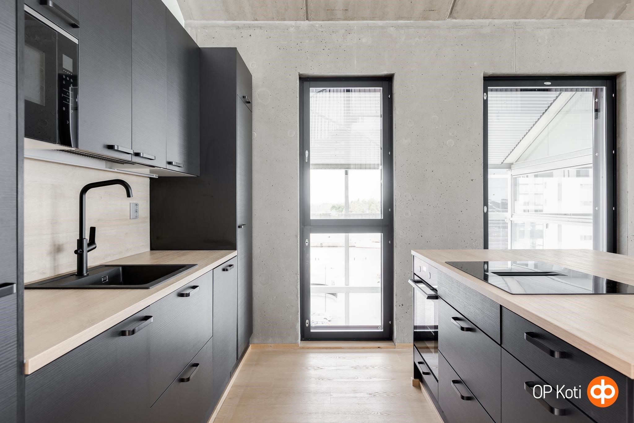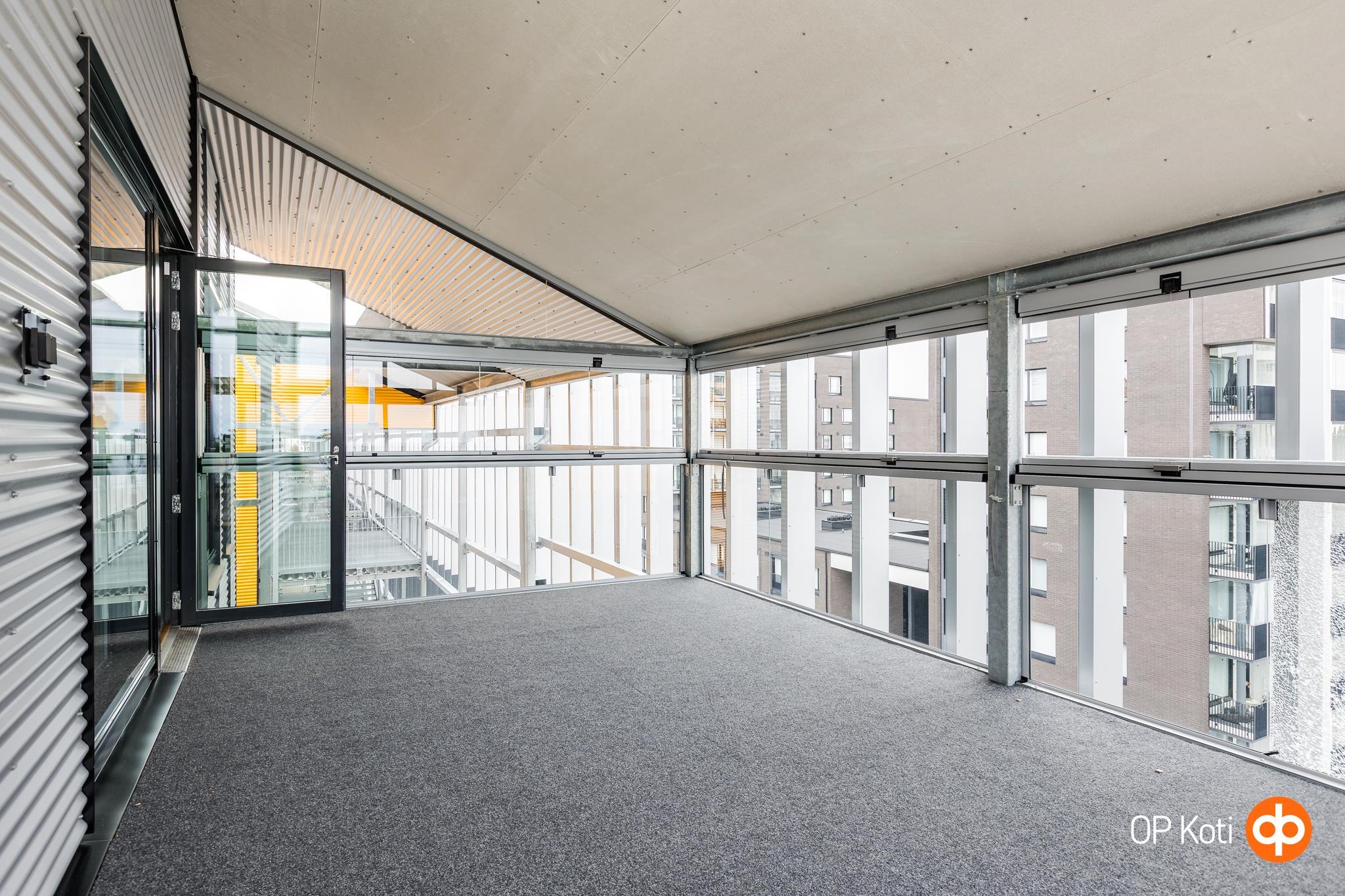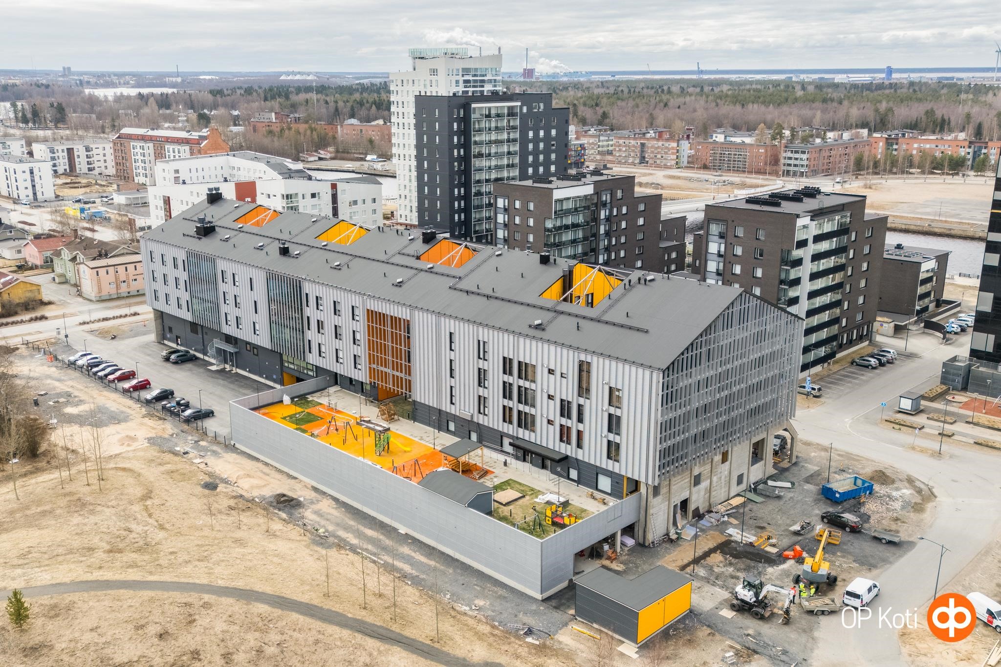 Olohuoneen ja keittiön vaikuttava huonekorkeus ja viisto sisäkatto tekevät tilasta avaran. Isot ikkunat aukaisevat näkymän merelle. Lasiliukuovi erottaa koko huoneiston levyisen parvekkeen, josta avautuu rauhoittava näkymä Toppilansalmeen. Tämä on täydellinen paikka viettää rauhallisia hetkiä auringonlaskun aikaan. Kaksi makuuhuonetta ja tilava oleskelu- ja ruokailutila ovat meren suuntaan, tuoden valoa ja avaruutta. Kolmen makuuhuoneen koti täyttää suuremmankin perheen asumistoiveet.