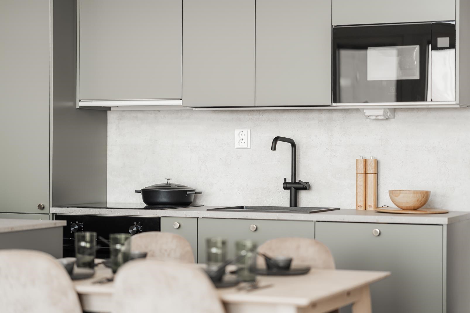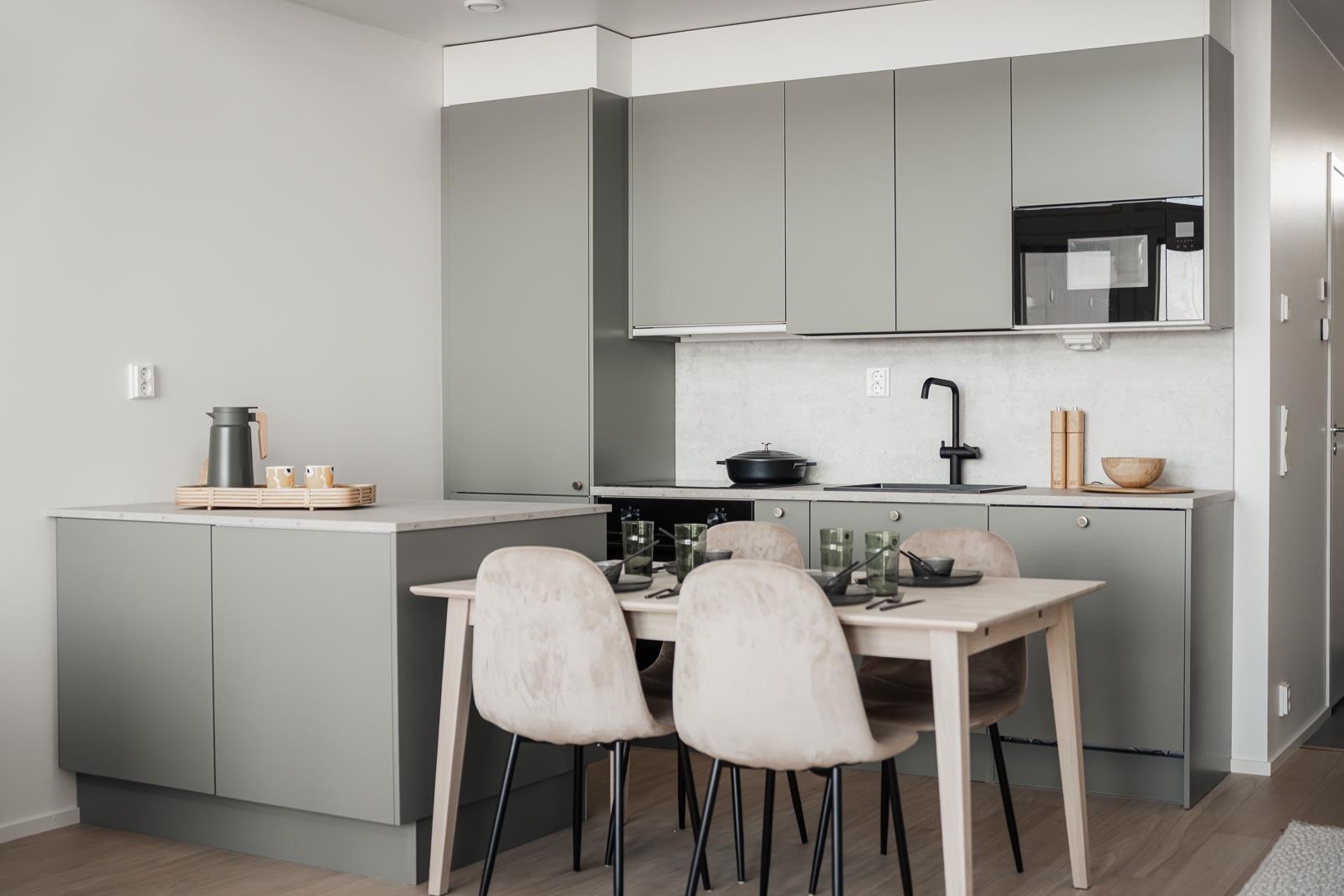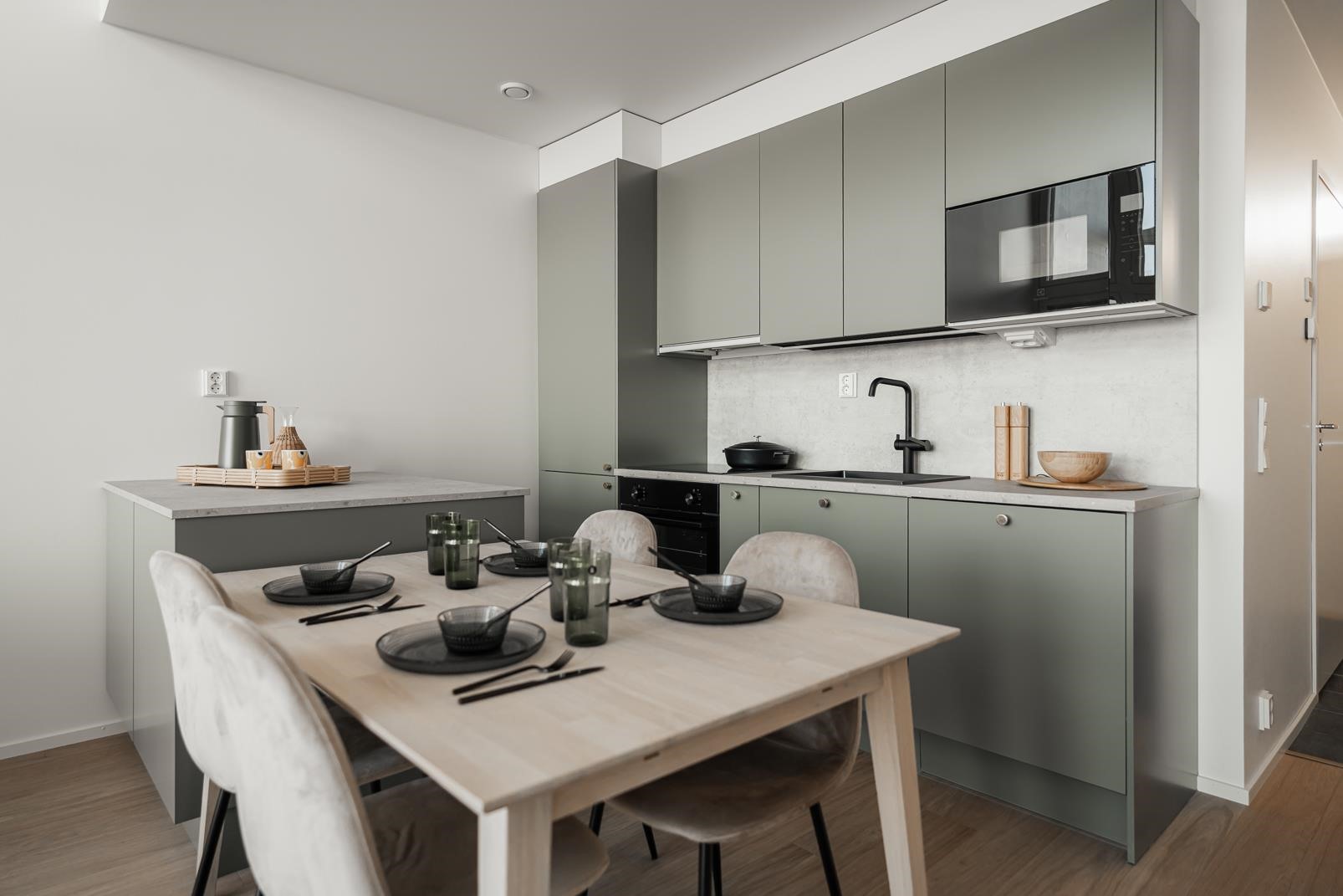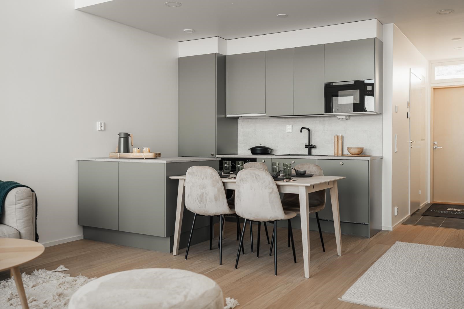 - Asunnoissa on lämmöntalteenotolla varustettu huoneistokohtainen koneellinen tulo- ja poistoilmanvaihto. Asuntoihin voi hankkia lisätyönä jäähdyttävän ilmalämpöpumpun.