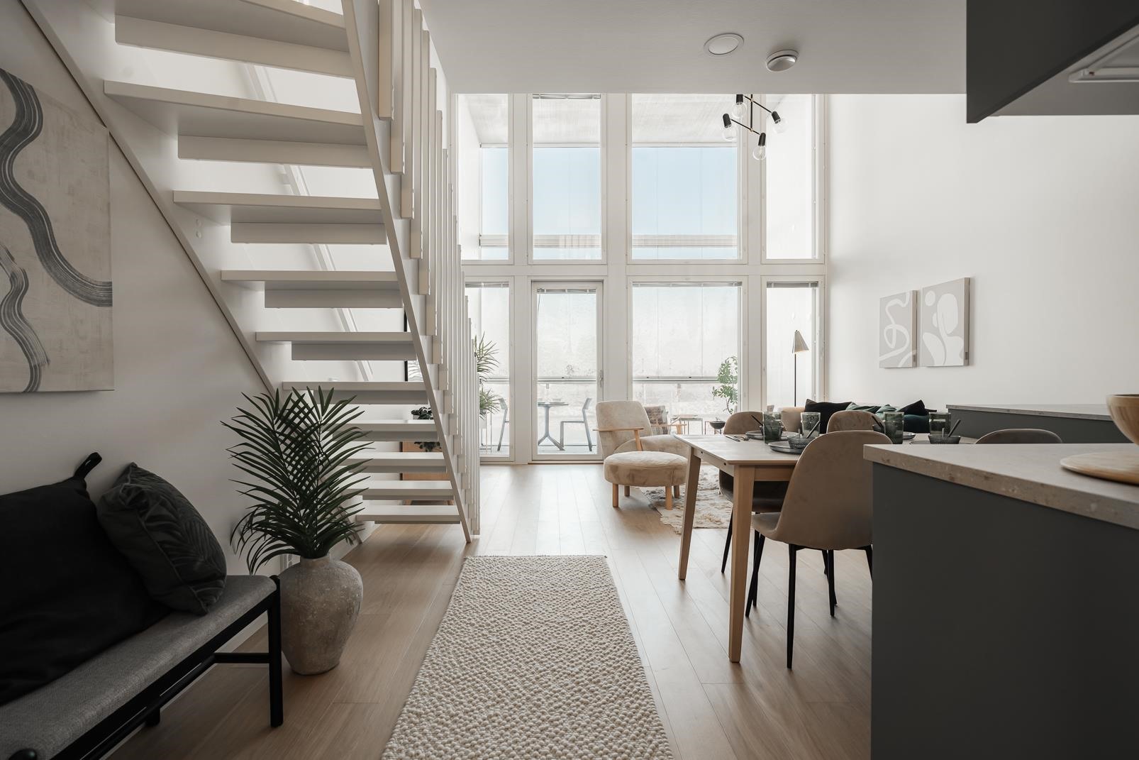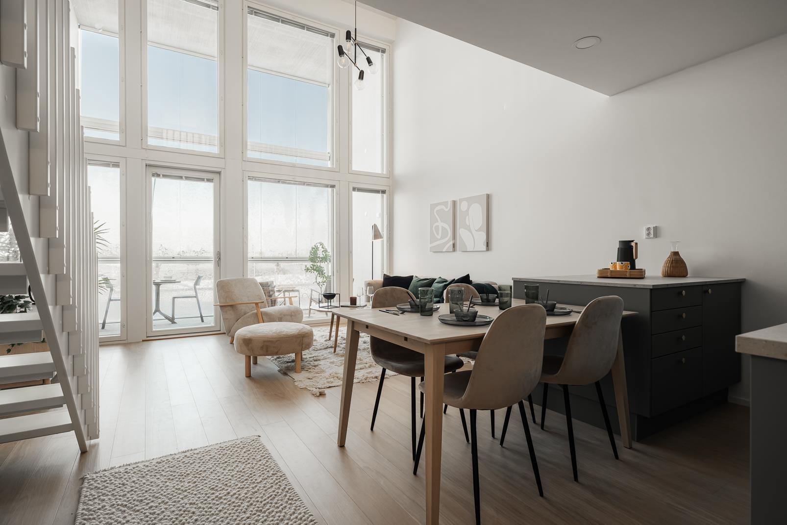 - Avara ja valoisa asunto suurten ikkunoiden ja ylellisen noin 5 metrin huonekorkeutensa ansiosta