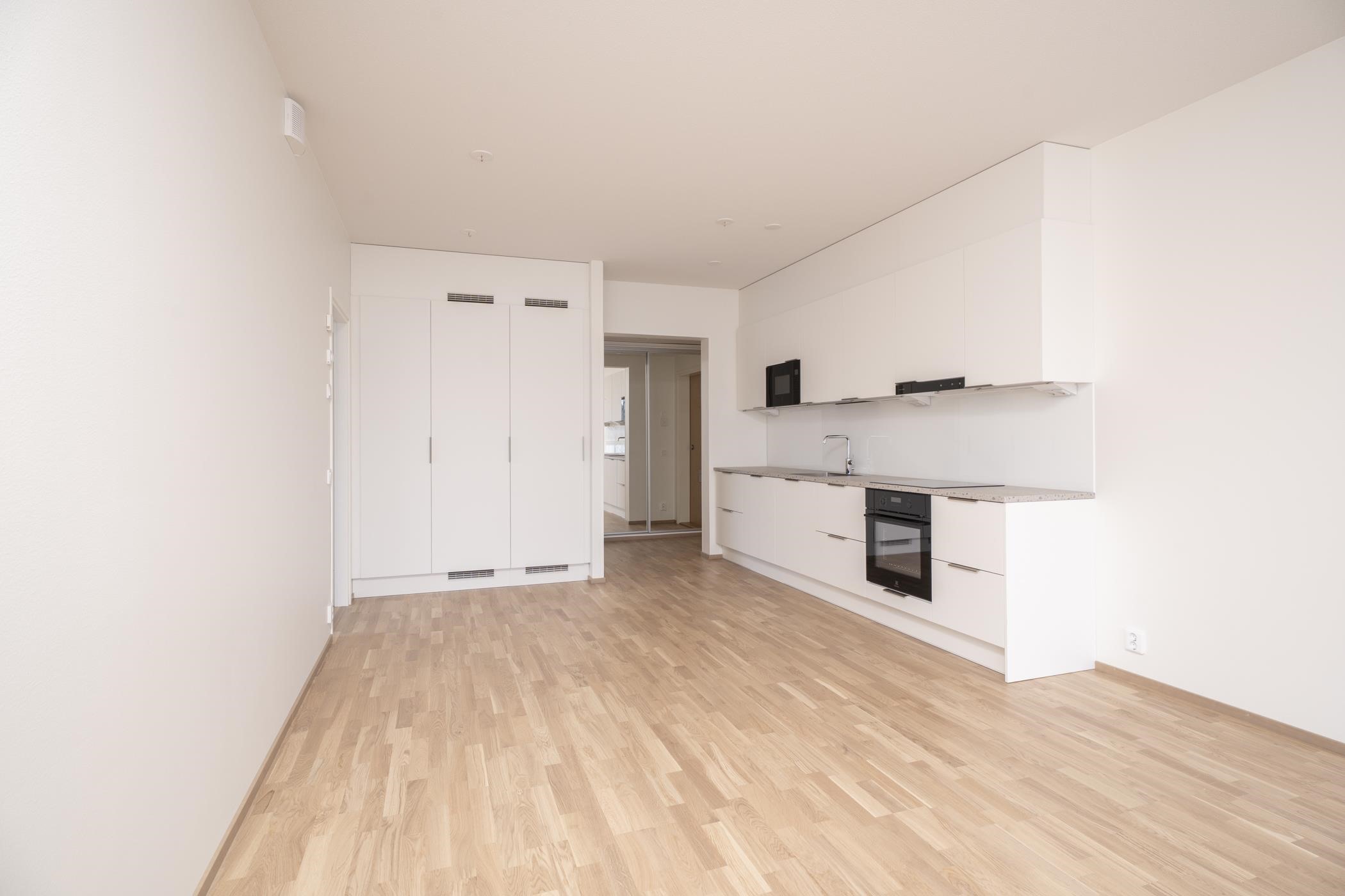 Asunnon varustelutaso on korkealuokkainen: lattiat ovat kaunista parkettia ja keittiö on varusteltu modernein, integroiduin kodinkonein. Kylpyhuoneesta löytyy oma sauna, ja koko huoneiston levyinen lasitettu parveke tarjoaa täydellisen paikan rentoutumiseen. Tulevaisuudessa parvekkeen edustalla kulkee ainoastaan kävelytie, joten näkymät säilyvät rauhallisina.