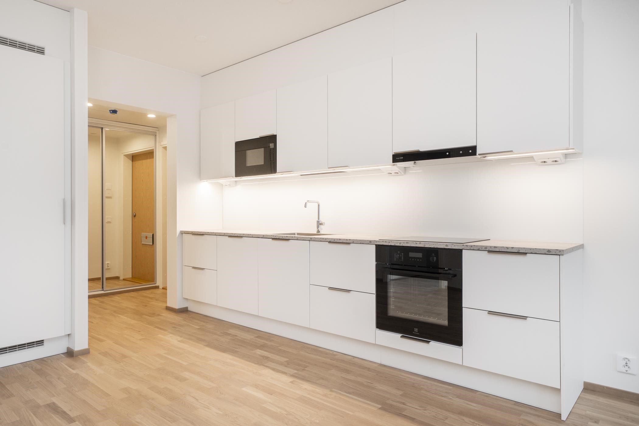 Tässä asunnossa on mukavat maisemat joka ikkunasta, kohti Tohloppijärveä ja lenkkipolut lähtevät aivan kotioven vierestä. Reipas määrä ikkunapinta-alaa tekee tilan tuntua, ja termostaatein ohjattava vesikiertoinen kattosäteilylämmitys mahdollistaa sisustamisen oman maun mukaan, kun pattereita ei huoneistosta löydy. Tämä koti tuntuukin neliöitään suuremmalta. Asunnossa on laadukas varustelutaso. Parkettilattiat, keittiö on varusteltu integroiduin kodinkonein, kylpyhuoneessa oma sauna ja lasitettu parveke on koko huoneiston levyinen. Tulevaisuudessa parvekkeen edestä menee vain kävelytie.