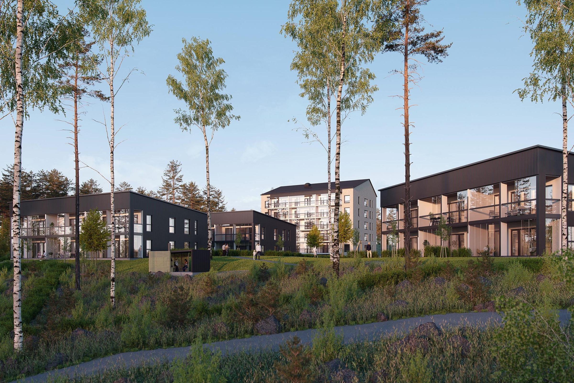 Vehreälle Tesomajärven alueelle rakentuu tyylikäs 18 asunnon luhtitaloyhtiö, Asunto Oy Tesomajärven Villat.