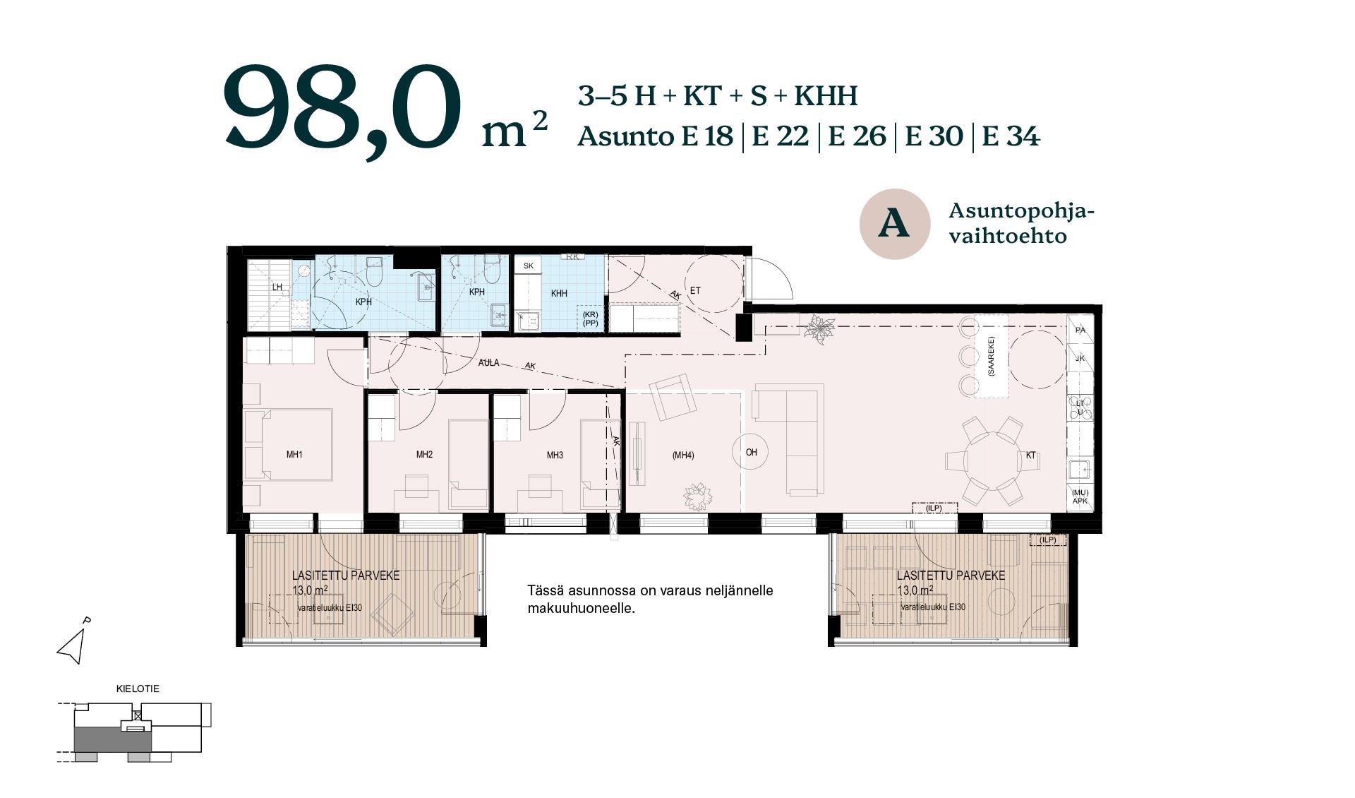 Ennakkomarkkinoinnin aikana varatessasi voit vaikuttaa huonejärjestykseen ja muokata kotiasi tarpeidesi mukaan - esimerkiksi valita saunan tilalle kodinhoitohuoneen tai vaatehuoneen. Kaikki valmiiksi suunnitellut muutokset sisältyvät asunnon hintaan.