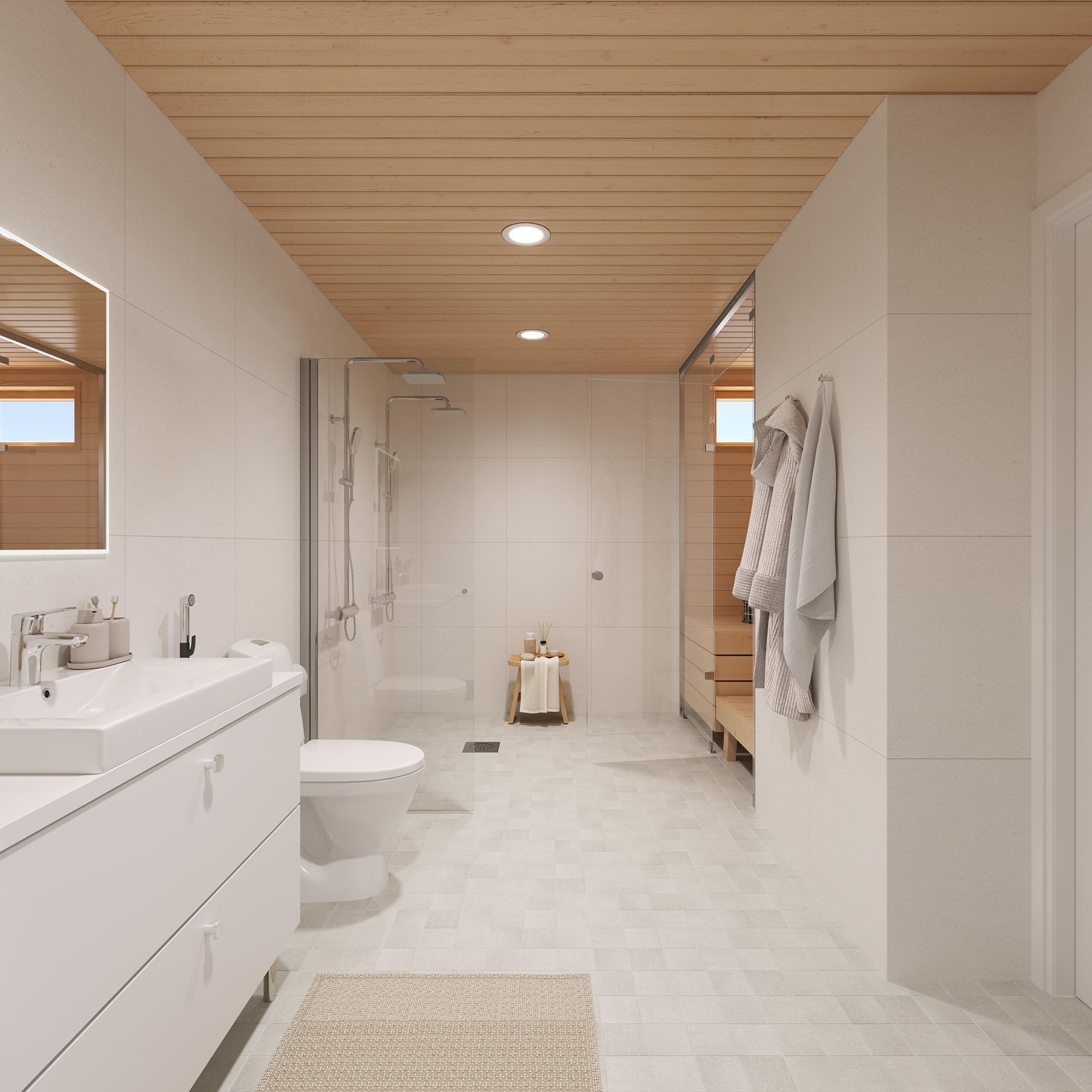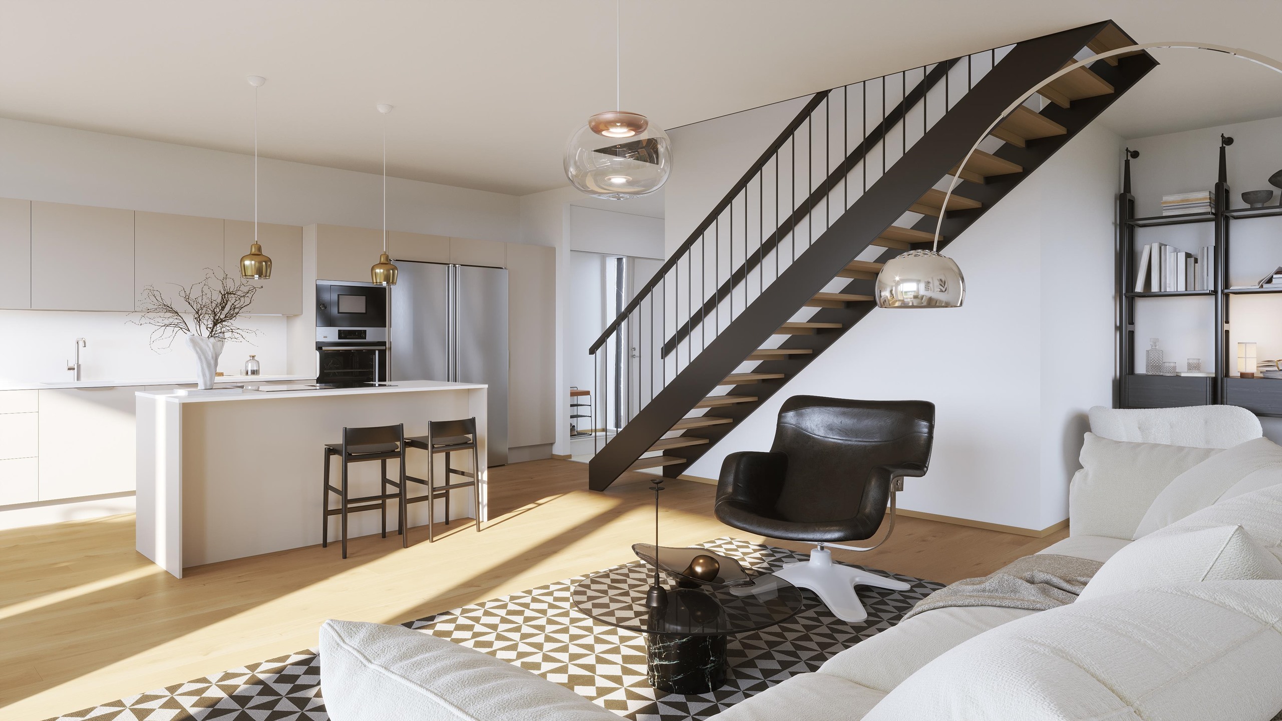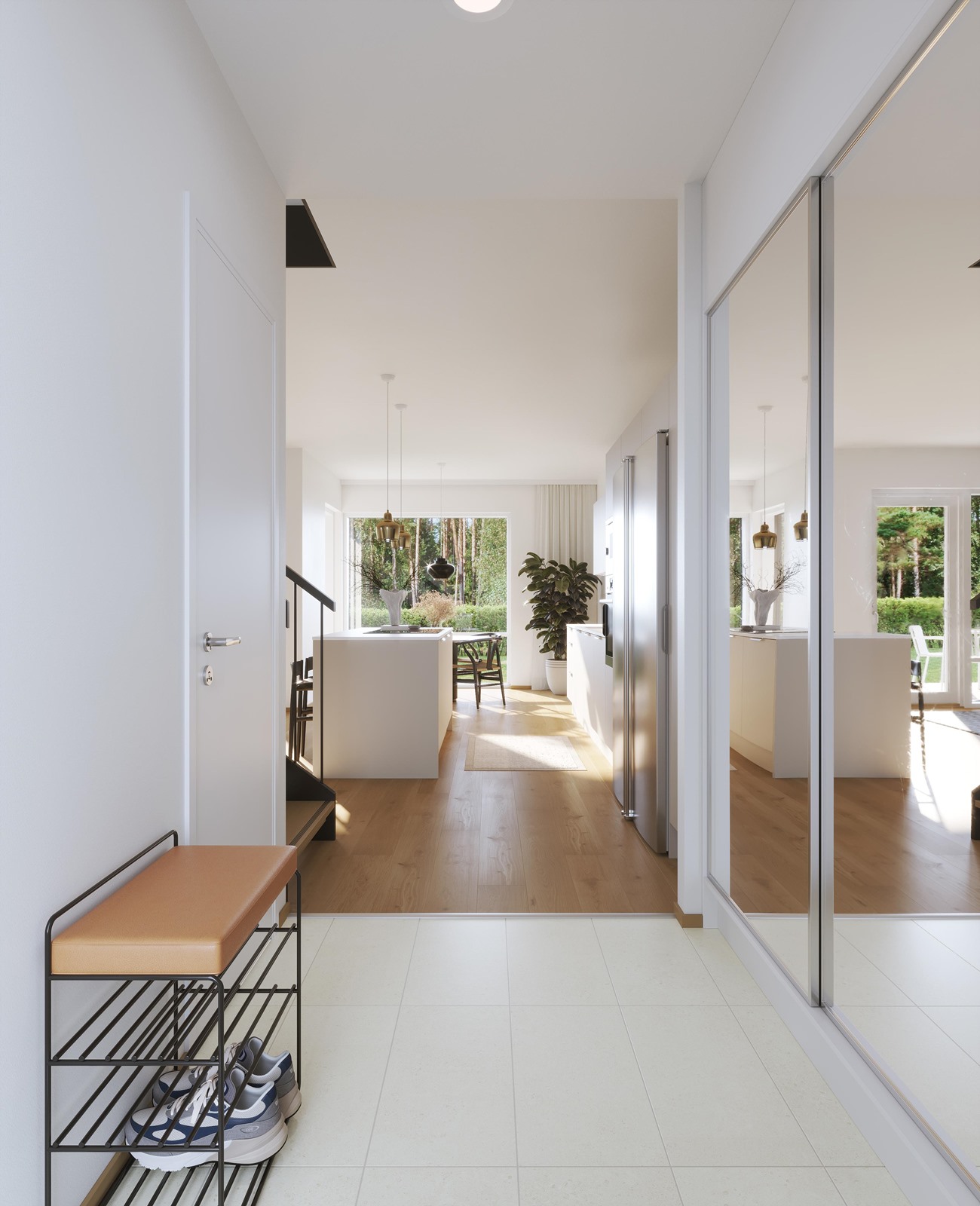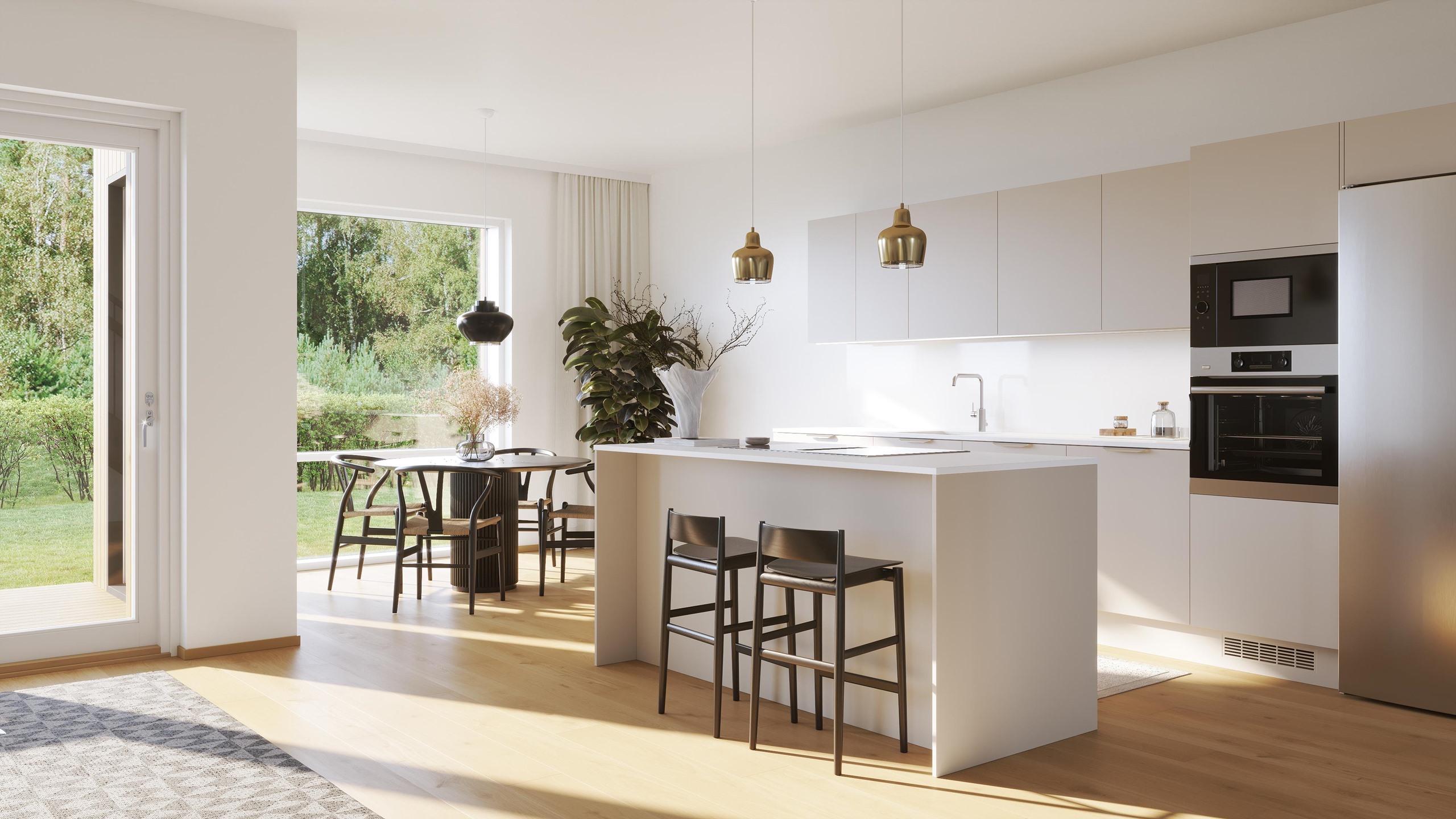 Jokainen kuudesta kodista on pinta-alaltaan 111m2, makuuhuoneita on kolme ja tilat jakautuvat kahteen kerrokseen. Sisääntulokerros on yhtenäistä tilaa. Laadukkaan avokeittiön kaapistot ovat Puustellin mallistosta ja laitteet Electroluxilta. Nykyaikaista mukavuutta on keittiön induktiotaso integroidulla liesituulettimella. Sekä ruokailu-, että oleskelutilasta avautuu luonnonläheinen maisema omalle terassille ja pihalle. Makuuhuoneet, sekä kylpyhuone ja sauna sijoittuvat yläkertaan. Päämakuuhuoneesta on käynti parvekkeelle. Neliöitä ei ole hukattu aulatiloihin. Koteihin valittu Kährsin kovapuulattia tuntuu jalan alla miellyttävältä, sen alla on vesikiertoinen lattialämmitys.